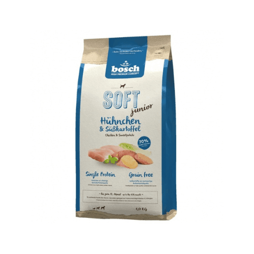 bosch Soft Junior Hühnchen & Süßkartoffel ist besonders für ernährungssensible Junghunde geeignet, die unter Futterunverträglichkeiten und Allergien leiden. Mit frischem Hühnchen als alleinige, tierische Proteinquelle und hochverdaulicher Süßkartoffel verwöhnst du deinen Junghund schonend und natürlich getreidefrei.