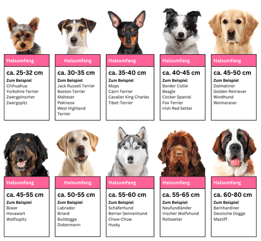 Bitte beachte, dass die genaue Größe des Halsbandes entsprechend dem Halsumfang deines Hundes ausgewählt werden sollte.