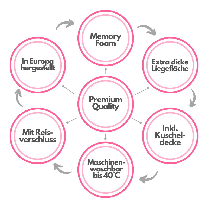Eine weiche Decke mit schicker Druckknopf-Befestigung verhindert Verrutschen und sorgt für zusätzlichen Komfort – flexibel abnehmbar und anpassbar für warme und kalte Jahreszeiten. - Memory-Foam Liegekern: