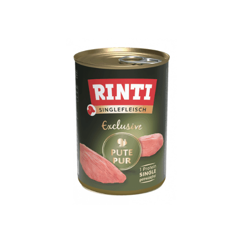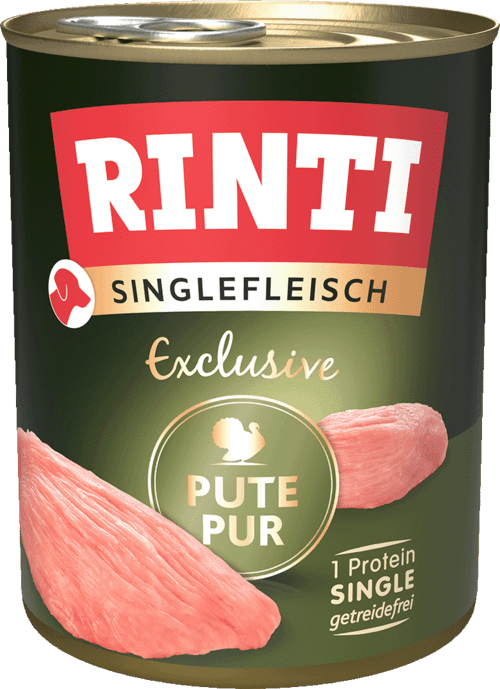 Rinti Singlefleisch Exclusive Pute Pur bietet eine einzigartige, proteinreiche Ernährung mit 65 % Pute (Muskelfleisch, Herz, Leber), ohne Getreide und Gemüse, ideal für empfindliche Hunde mit Allergien oder Verdauungsproblemen.