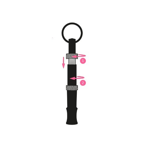 Die Tonhöhe kann an die Bedürfnisse deines Hundes angepasst werden. Dafür das Pfeifenende (1) verstellen bis der gewünschte Ton erreicht ist und danach die Feststellschraube (2) bis zum Anschlag des Pfeifenendes drehen, um den Ton zu sichern - Robuste Verarbeitung:
