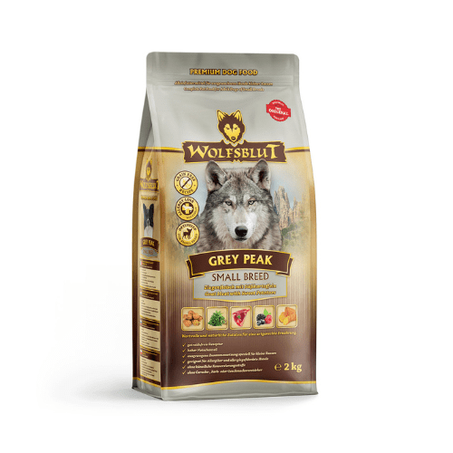 Wolfsblut Grey Peak small Breed für kleine Hunderassen. Kleine Hunderassen werden gegenüber ihren großen Verwandten statistisch schneller erwachsen, später alt und leben länger. Als Miniaturausgabe der Wolfvorfahren sind sie voller Energie, beeindruckend beweglich und schwer zu ermüden. Dieses Feuerwerk an Aktivität bleibt lange erhalten, wenn die Nahrung entsprechend energiereich ist und in kleinen Portionen verköstigt wird. Idealerweise gibt es immer ein Portiönchen nach dem Spazierengehen, vor der Ruhepause. Drei bis vier Portionen verteilt über den Tag vermitteln deinem Hund zudem mehr Futter zu erhalten, als es die gleiche Menge, verteilt auf zwei Portionen vermag.